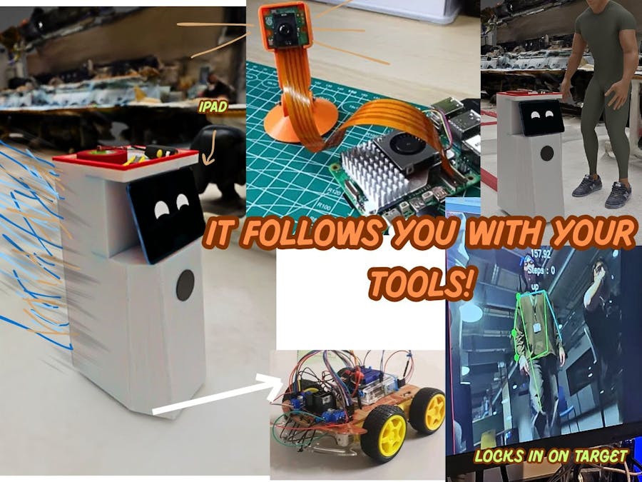 Also, what's the point of having a physical robot if its just gonna stand there and talk to you? That's why LabAssist helps you even transport tools across the room, guiding new users through safety protocols, or providing accessibility support for those with mobility needs. Imagine you need assistance to carry objects around and are unable to do so, it would be very difficult to work without a staff or other person constantly there to help you. So just place your tools on its head tray and it will use machine learning to follow you to your next work station! A personal butler of sorts!