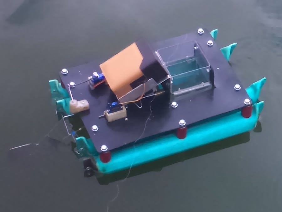 I had mixed feelings after the test. The rudder worked fine. The cargo bay’s door opened and released the food just as I wanted. The cargo transporting and releasing part can come in handy in numerous cases. On the video I just released food into the water, but it can be anything from monitoring devices to chemicals. The only problem right now is the speed of the boat. It is quite slow. I realized that the boat is too heavy and the motor is just not powerful enough.