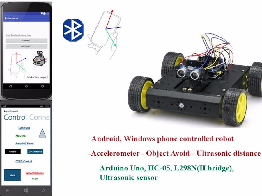 Hello there guys, My Initial Idea was to make a robot through scratch parts (the robotic Structure mainly) and making it controlled by a Windows phone 8 Application through Bluetooth, The Robot is controlled by the Accelerometer sensor of the Phone but however the development of the application is not covered here in this tutorial instead I have provided link to store. The project covers the Accelerometer controlling and also the autonomous part but you guys can seperate them if you're not willing to integrate anyone of them.