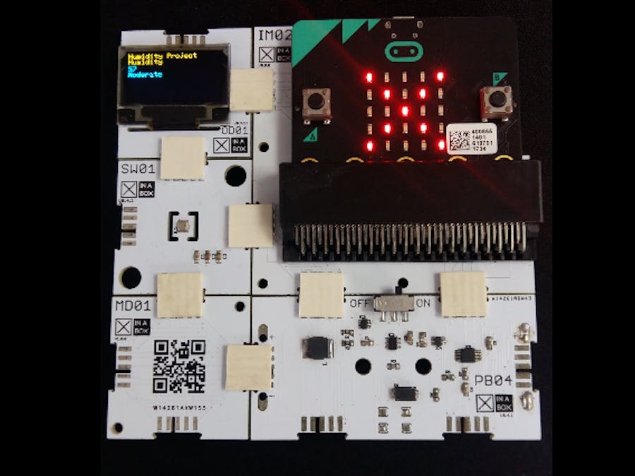 IntroductionI built this humidity meter using the Micro:Bit and a couple of ☒CHIPs from XinaBox. The XinaBox technology made this project extremely easy to do by eliminating the need for soldering and extra tools. The Micro:bit interface allows me to program easily. This project is an adaption of my previous Micro:bit Temperature Monitor project, showcasing another application of the SW01 sensor.