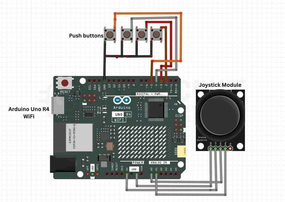 - Push Buttons (×4) – For actions like jump/shoot