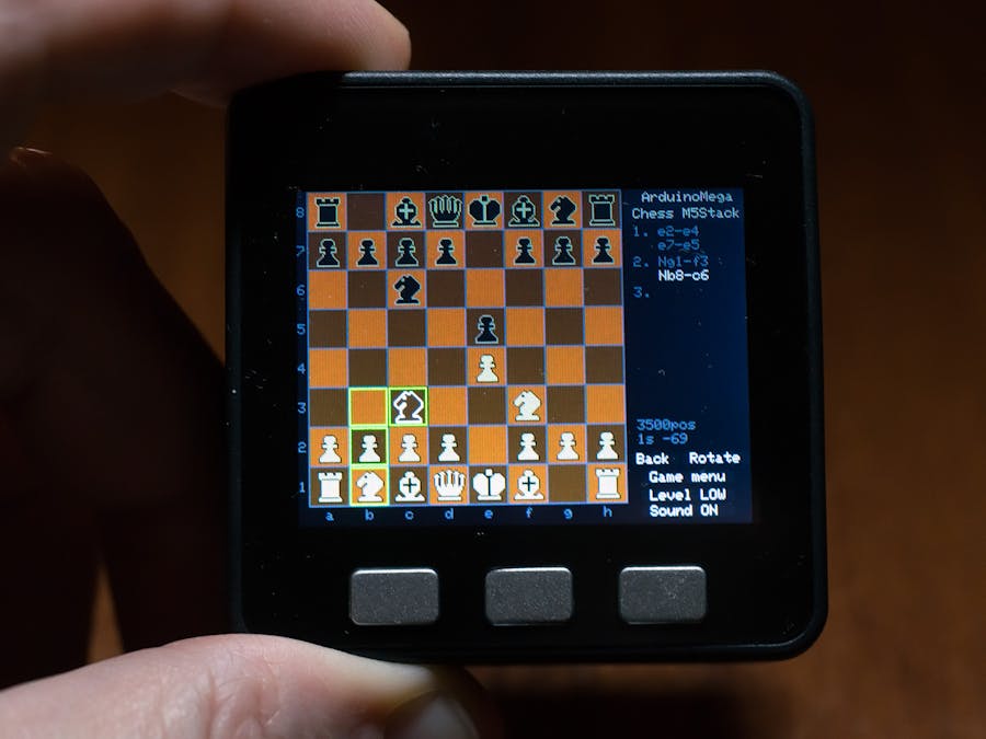 Advantages of M5Stack platform are repeatability and solving power of ESP32. In comparison with original project performance level grows up in about 15 times, and is 2000-5000 nodes per second, what lead up to 10 plyes depth of solving tree in hard situations, and more in easy positions.
