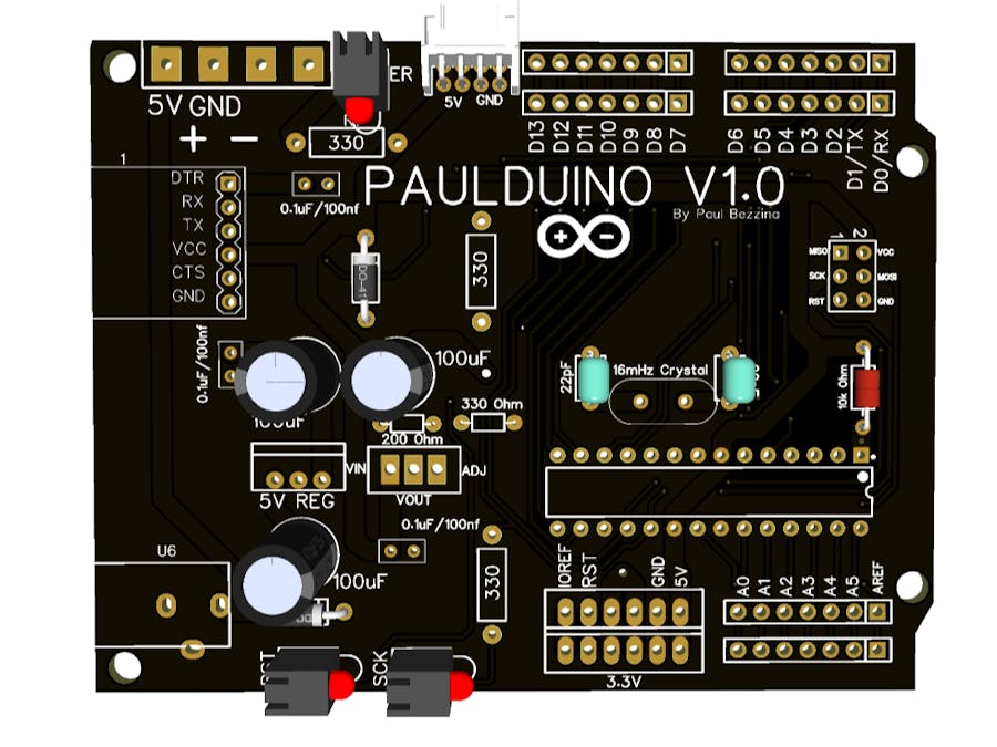 After finishing my robot arm and Bluetooth car project, I realized I had used up all my available Arduinos. I didn't want to take apart my just completed projects to get the Arduinos back, so I started researching how to build my own. This would save money and give me a chance to learn and develop new skills, especially in PCB design.