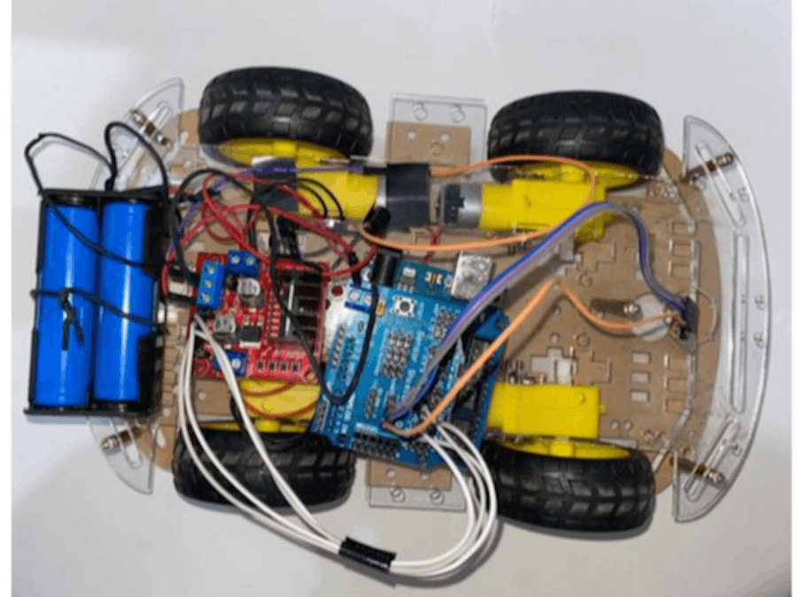 - Connect a battery pack (typically 9V or 12V) to the motor driver to power the motors and the Arduino.