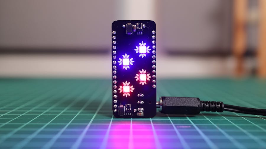 Also, the blue & red LEDs can be individually controlled through GPIOs 15 & 16 of the Feather.