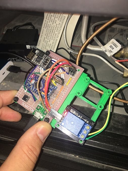 This is my fireplace projet. I started it because I wanted a way for my downstairs to stay warm without making my upstairs too hot. If I run the furnace, all my heat goes up on the second level because my vents in my place are very poorly positioned. I run the fireplace downstairs and in combination with the overhead fan evens the place out nicely. The fireplace already has a huge remote that I don't care for. I figured why not control with with a microcontroller. Having a understanding of HVAC and fireplace systems, my particular unit was triggered by 30-50mv that it supplies itself. Meaning its basically a relay that when closed, activates the fireplace.