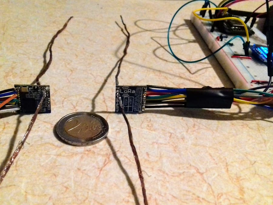 About 2 weeks ago I knew next to nothing about LoRa. The price of the "ready to go" shields and boards was putting me off, but with claims of up to 15KM radio range I was very curious and eventually managed to get them for just under β¬8 a piece. With the NodeMCU's for about β¬5.50 each, this means you can get over 600 Metres range for a total of β¬27. Which is about half of what you would be paying if you used prebuilt.