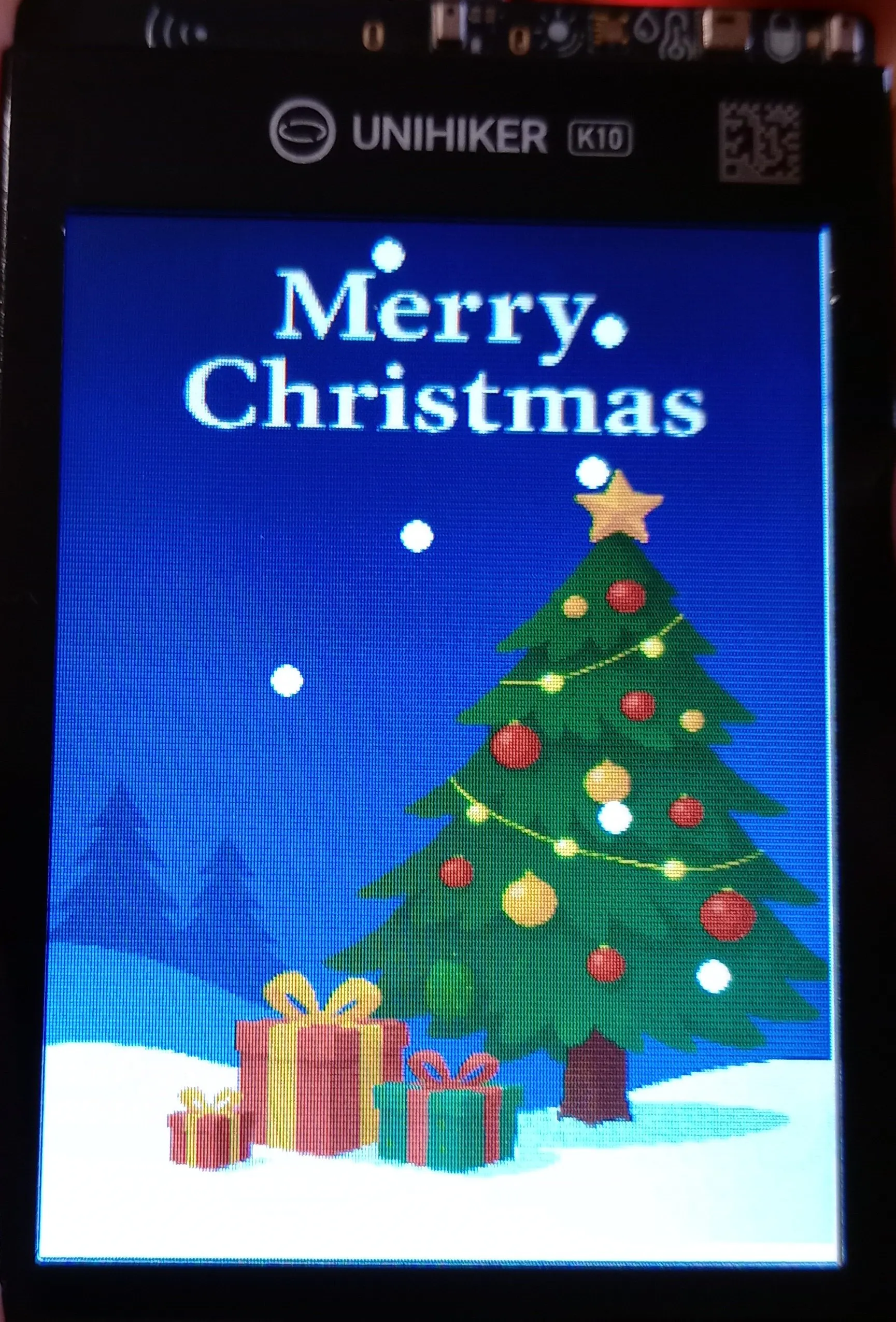 In this simple project, we'll create a DFRobot UNIHIKER K10 application in just a couple of hours in a secondary school classroom. After a brief presentation of the board in class and viewing the preloaded program, we looked for a possible application that could be created quickly and without additional components. Given the proximity of Christmas, we opted for a simple program that makes snow fall in front of an image inserted as a background.