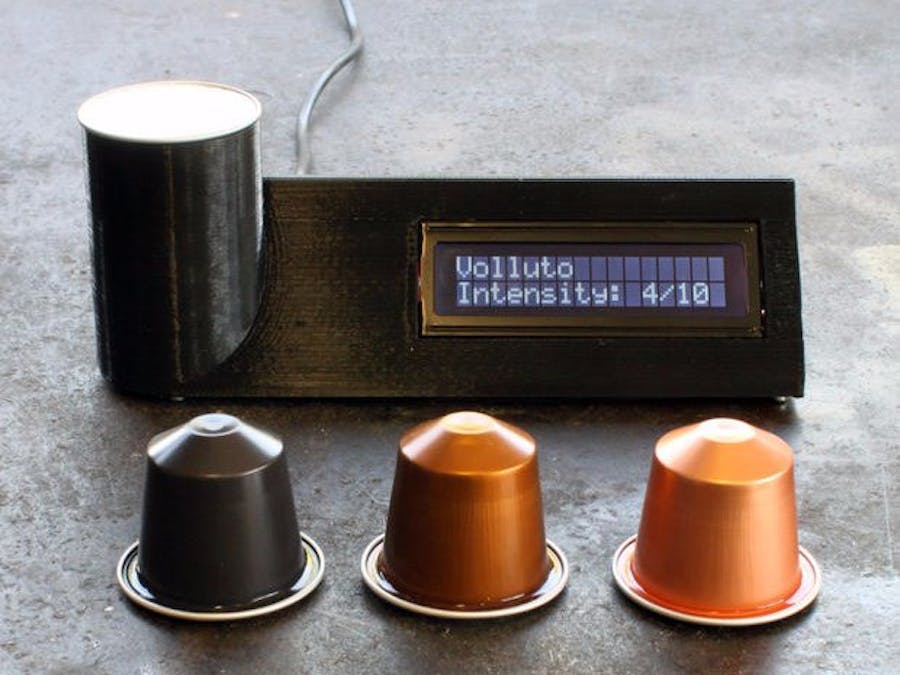 We always buy a lot of different capsules for our workshop, put them in a jar, and then we have no idea which color to pick. So we came up with the Nespresso capsule detector.