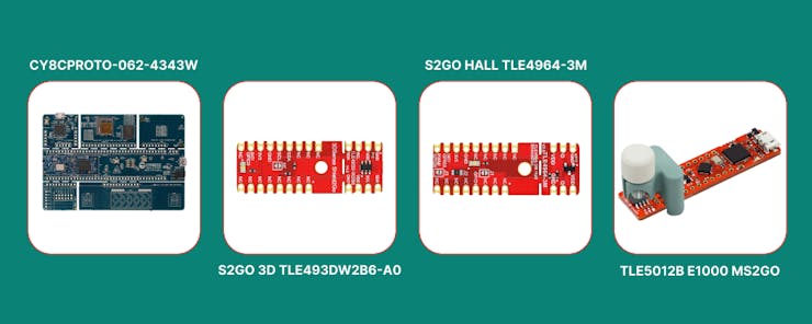 - Magnetic field sensor: S2GO 3D TLI493DW2BW-A0. This shield in Infineons 2Go form factor senses magnetic fields in three dimensions.
