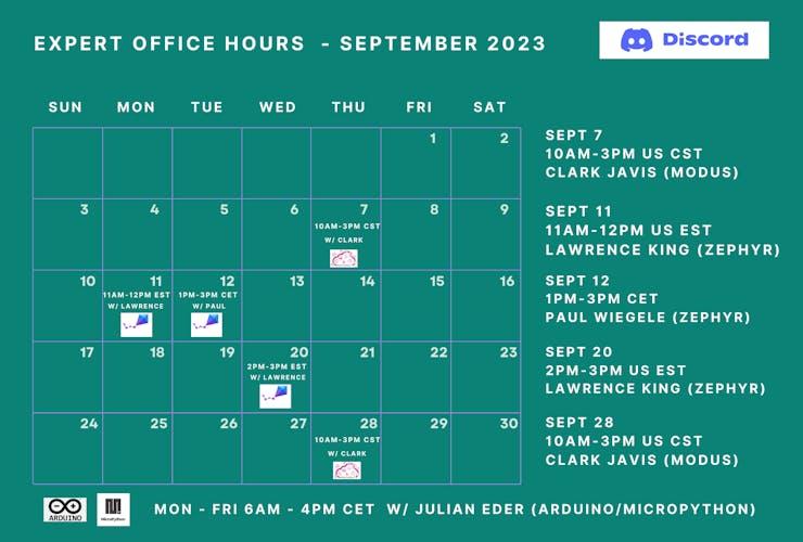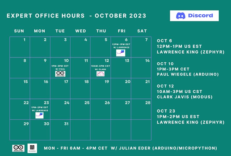 - Office Hours for live support - the experts will be online during these hours in the contest discord, please be aware of the timezone differences on this schedule.