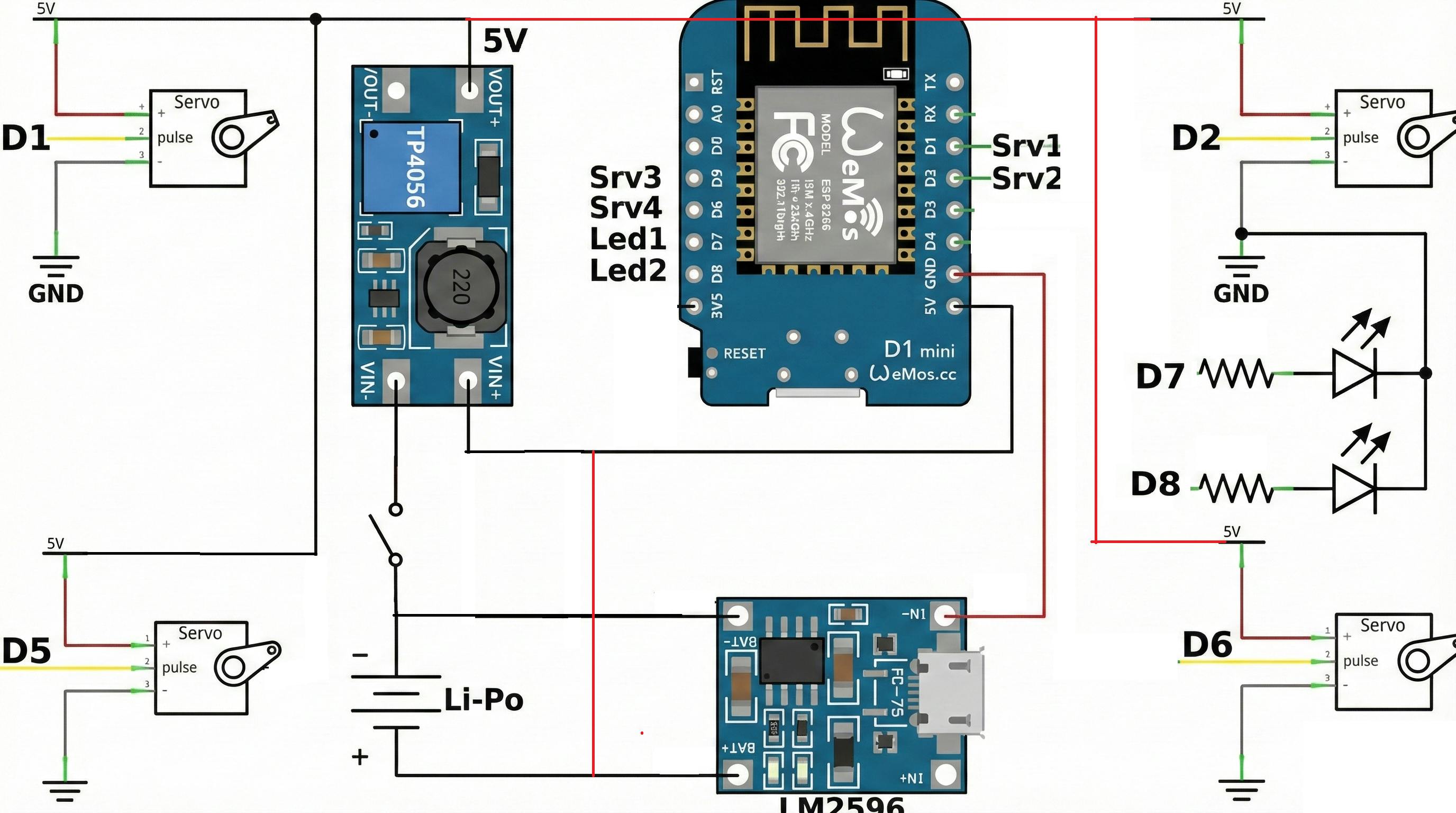 I made simple wifi controlled quadruped robot. Unlike complex robot dogs that require expensive motors and difficult coding, MiniQ uses just one servo per leg (1 DOF) and a Wemos D1 Mini (ESP8266) for full Wi-Fi control.