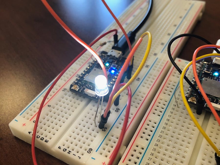 The Light PagerHow this system works is through a program created on particle.io. When the wire is connected to the photon, completing the circuit an event is created. This event sends a message to the second photon over the internet telling it to flash the LED. The LED has delays in the code cauing it to flash five times. This communication works both ways so that both the photons can publish events and subscribe to them as well. By designing the circuit in this way, both individuals can get one another’s attention if needed.