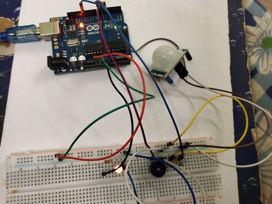 Imagine a situation that when you entered a restricted area. Think of having an alert signal or an alarm system to indicate that you have entered a restricted area. Sounds Good right!.This project is about getting an indication when you enter a wrong place.This uses the PIR motion detector sensor, buzzer and bulb.Whenever the motion is detected by PIR sensor it fetches the detection to arduino and this alerts the system by buzzer and blinking the bulb.