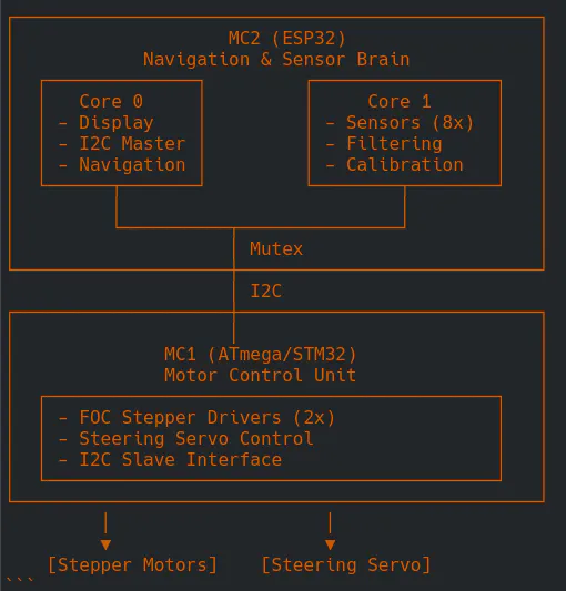 - Dual-core ESP32 architecture (sensor processing + navigation logic)