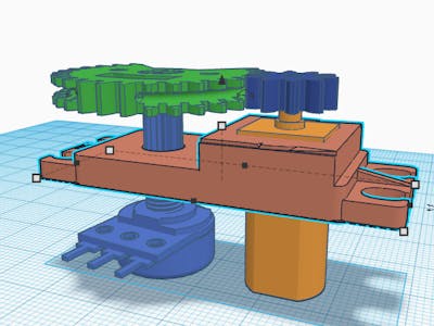In this project, I will use an N20 DC geared motor, known for its small size and impressive power thanks to its metal gearbox that increases torque while reducing speed. I will also use a 3D-printed case and gears to attach the potentiometer to the motor. The case has a slot for the motor and the potentiometer, and the gears have 10 and 30 teeth respectively, to create a 3:1 ratio between the motor and the potentiometer. This means for every full rotation of the motor, the potentiometer will only rotate 120 degrees.