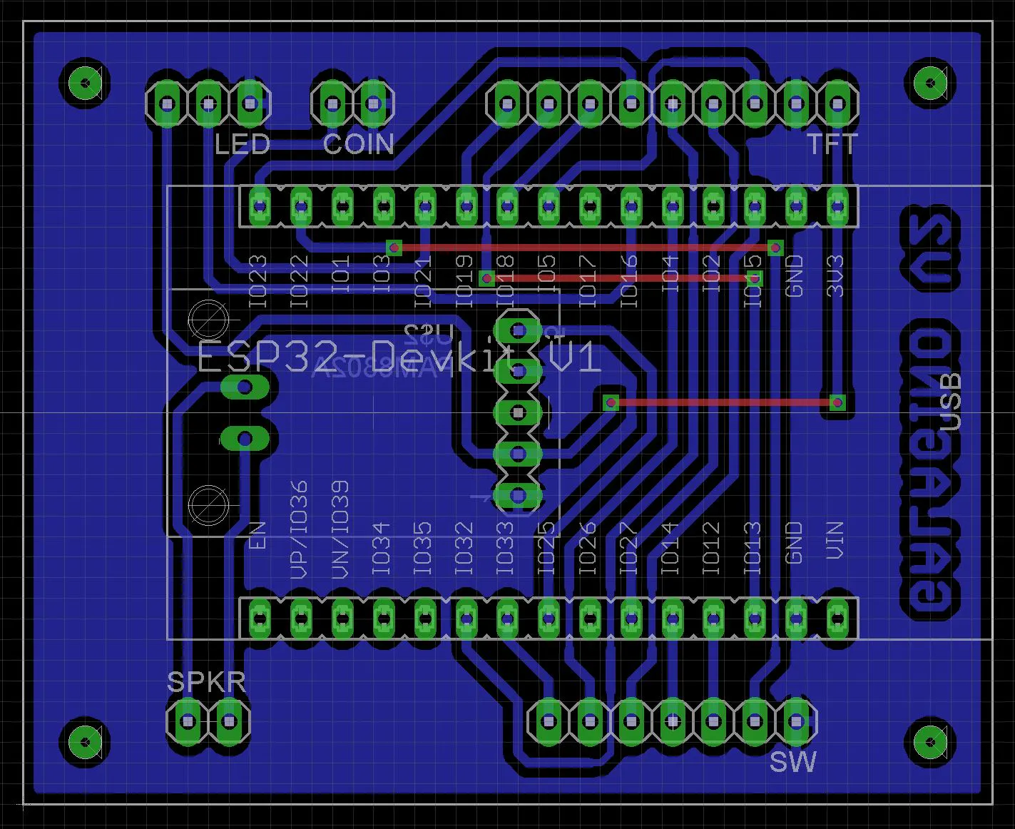The CPU board holds the ESP32 development kit and the PAM8302 3W Amplifier Module. It also contains pin headers to connect to the screen, control board, LED strip etc.