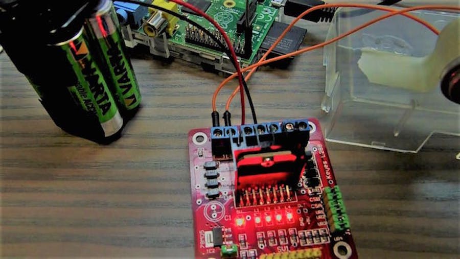 - Connect IN1 on the L298 to the Raspberry Pi’s pin number 26.