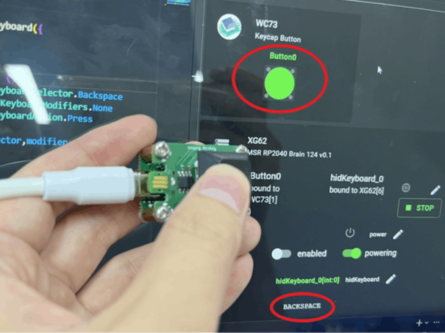 When KeycapButton is pressed, the keyboard triggers a Backspace.