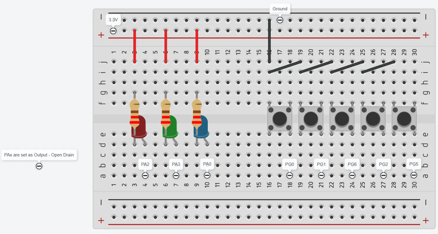 For this scenario, the main highlight would be the built-in LCD, which contains 240x240 resolution/pixels that utilizes the Flexible static Memory Controller(FSMC) peripheral communication, then some other implementations, such as 5 momentary switches, and 3 different color LEDs or 1 RGB LED.