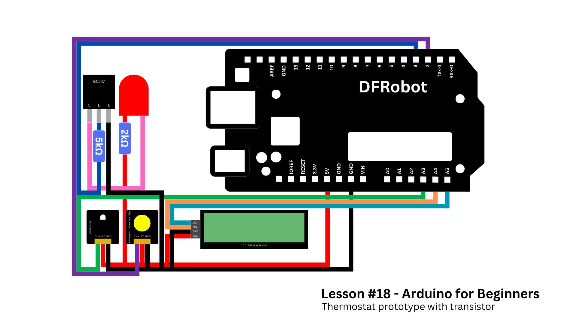 Project 2 - Temperature Indicator Using a TransistorTo demonstrate transistor control, the thermostat concept will be implemented again, but this time we'll replace the relay with a transistor driving an LED.