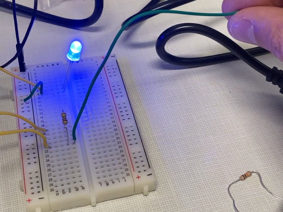 In this project, we made a very simple circuit with an LED bulb, a 220ohm resistor and a 1Megaohm resistor to make a conductive lamp that makes the bulb light up with anything conductive, that could be with anything like foil or even ourselves. We do not connect the board to the 5V of the board because the electricity will come from an outside source. Instead we leave an exposed cable, that is connected on the side with the mega ohm resistor. We have the led connected to arduino pin 12, and the conductor cable and resistor connected to pins 2 and 4. After the circuit is ready, We went to the Arduino IDE and then we download the CapacitiveSensor Library so we could then call into the code and include code to measure the capacitance coming into the sensor cable we left out. We made a threshold to dictate at what charge the light would turn on, and opened a serial connection. In the loop, we made a variable that held the sensor's value, and made an if/else statement to check if the sensor reads higher then the threshold to make the LED turn on.