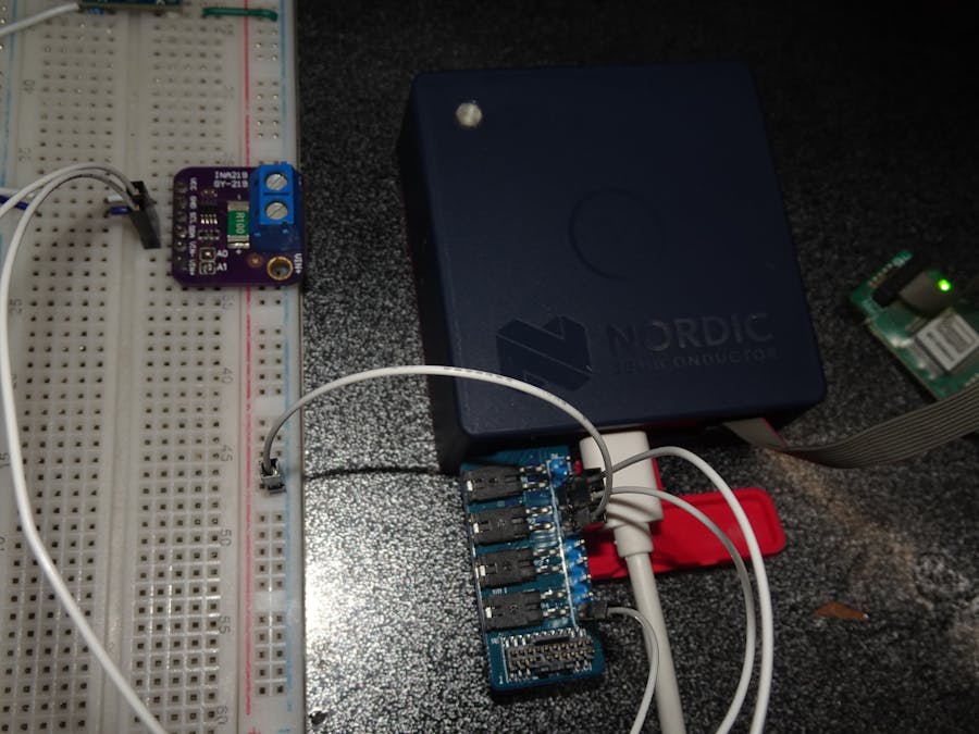 Thingy:53 is a compact nrf5340 based IoT development device from Nordic semiconductor with various kind of onboard sensors. In order to monitor the bidirectional current and supply voltage of external system we can use INA219.