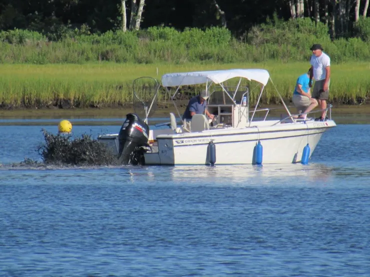 Peter Gabriel’s lyrics in Flotsam and Jetsam aptly describe the hapless boaters stuck in the mud during spring lows on Ockway Bay in Mashpee, Cape Cod. There is a good chance of something ugly happening as a boat motor churns up a rooster tail of black mud while making absolutely no headway.