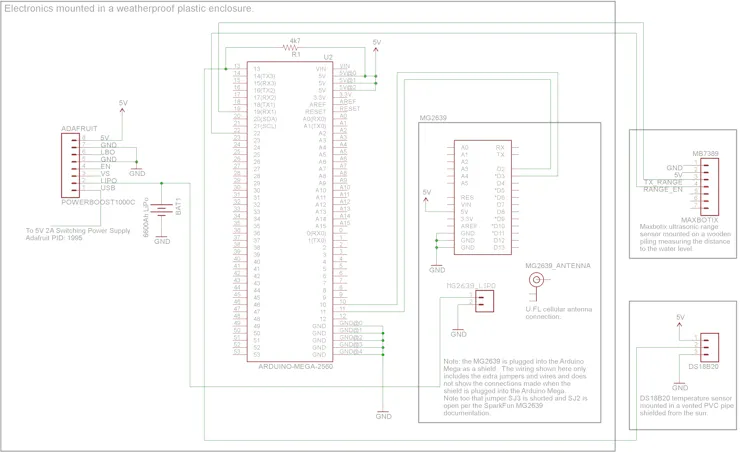 Getting your boat stuck in the mud in a shallow bay is easy if you do not know how deep the water is. Since accurate tide predictions and real-time water levels are not available for most bays and estuaries, including the one I boat in, I built my own low-cost, real-time tide gauge.