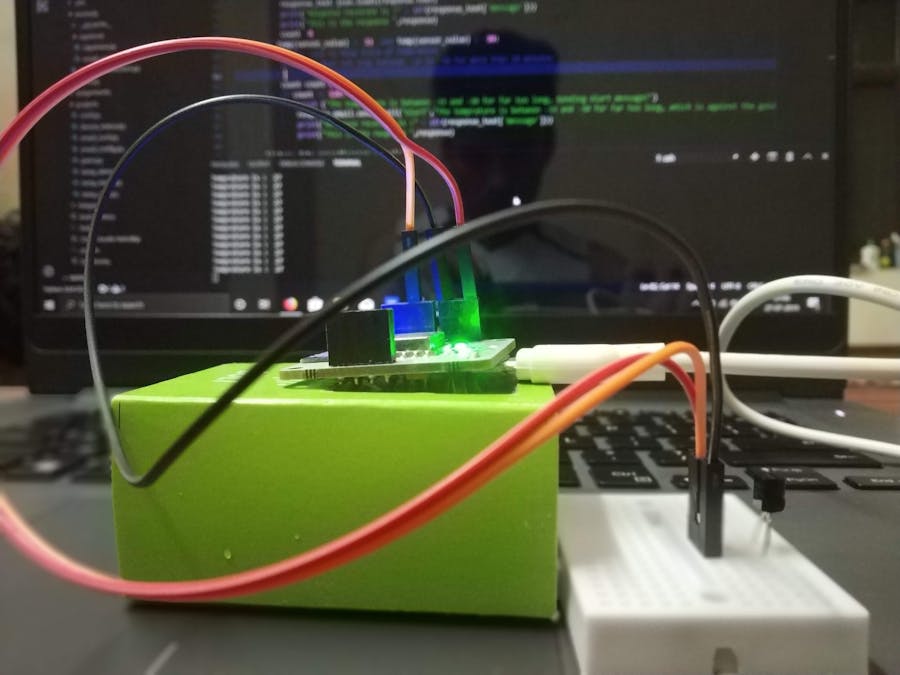 It is a temperature sensor setup up, being used to monitor the temperature of a medicine storage unit.