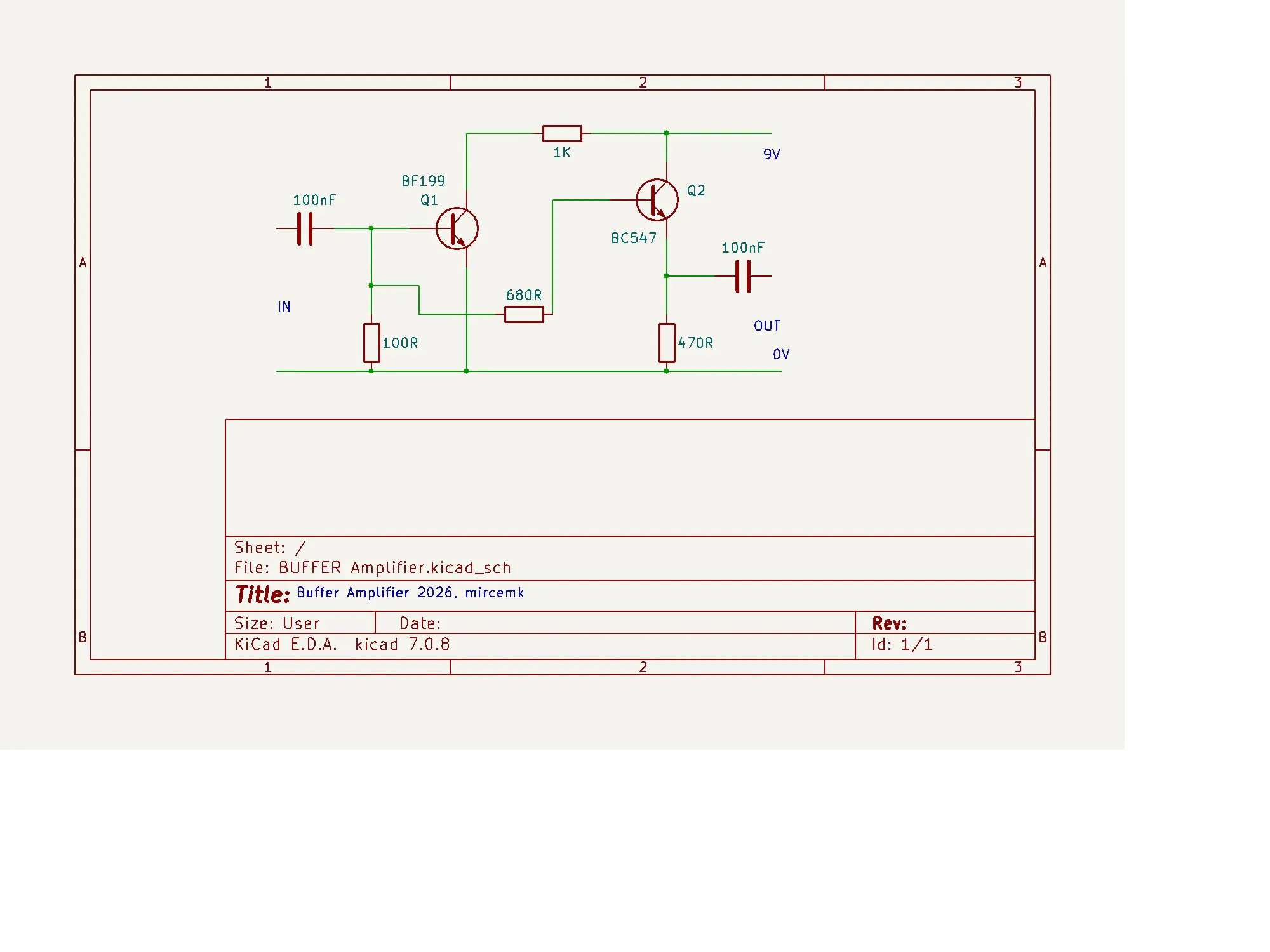 You can see two more components mounted on heat sinks and an additional assembly with two transistors on the PCB. The assembly is a Buffer Amplifier that raises the signal level from 1 to 5Vpp, this one is an LM317 stabilizer and provides 9V for the buffer circuit and the other one is a 7805 linear stabilizer through which the AD98500 module is powered. I made these additional modifications for the needs of one of my devices with special requirements, otherwise the assembly without these modifications is quite sufficient, using a direct 5V power supply. You can also see the schematic of the buffer amplifier below.