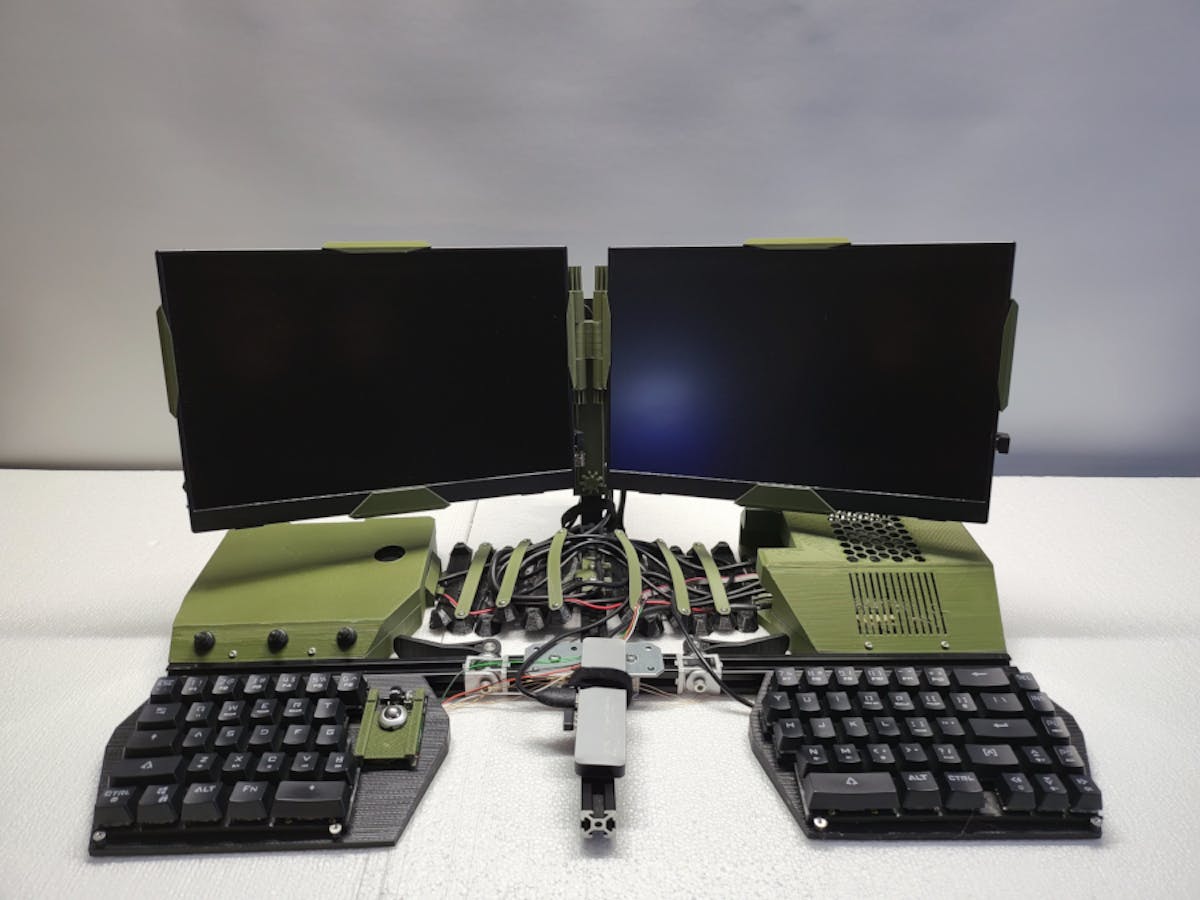 "[The Split Deck is] a dual-screen cyberdeck with split keyboard that is foldable for ease of transport," Legion explains of the 3D-printed build. "The Screens are 13.3" 2560×1440, the system is a UDOO Bolt (Ryzen 1605b, 8GB RAM, 256GB NVMe SSD), and the power supply is a USB-C PD [Power Delivery] enabled power bank (20V@3A out with 26Ah capacity)."