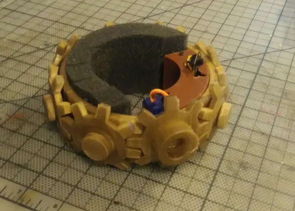 Make sure you wire the on/off switch on the outside of the container. And if you want to laser cut some foam and glue it to the inside to help hold the bracelet on your wrist.