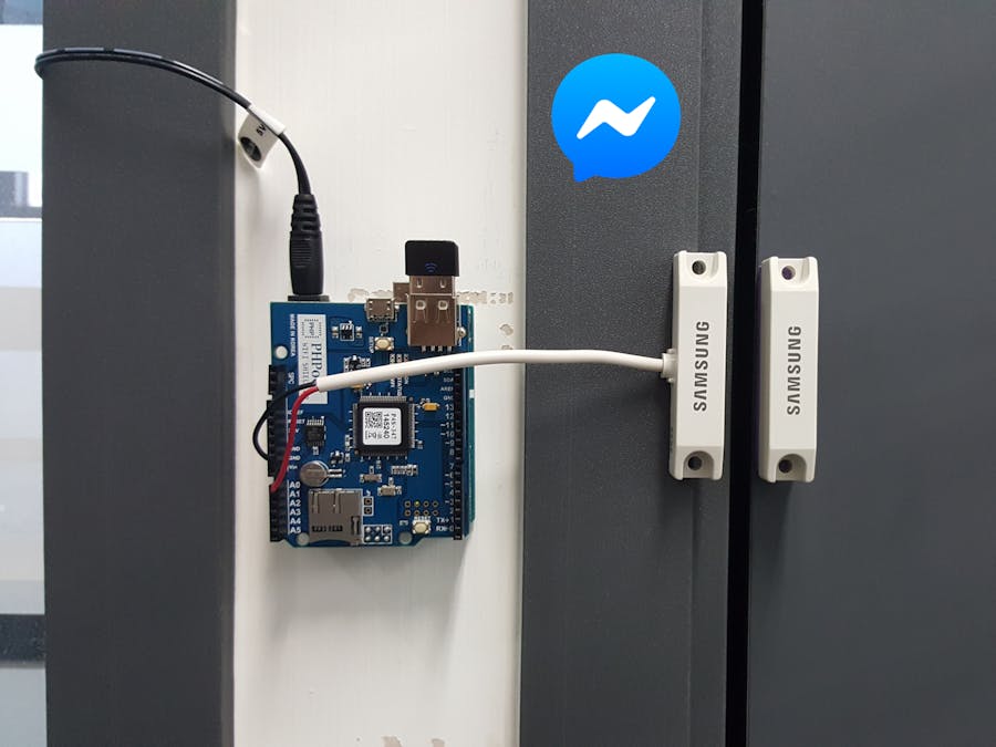 DemonstrationI made the similar project, but cheaper cost (in total) and can be used for industrial environment here: https://www.hackster.io/phpoc_man/phpoc-monitoring-door-open-via-facebook-messenger-49603e