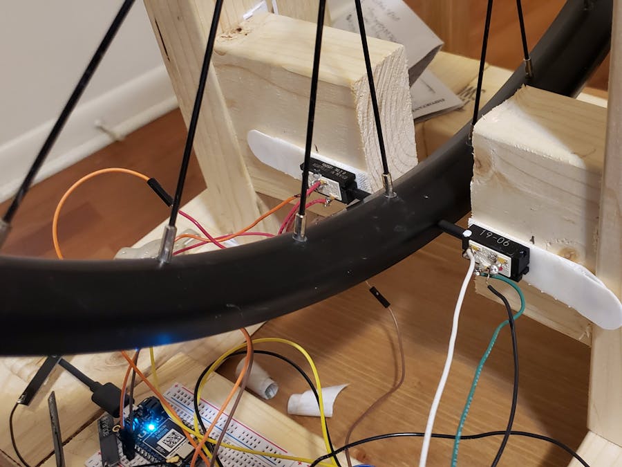 The inspiration for this project came from one Skyler’s friends from the 49er MTB Club who had taken this class a couple of semesters ago. We wanted to improve upon their design by using two potentiometers instead of one. This meant that we would not need a zeroing function and could in theory correct dents in the rim as well.