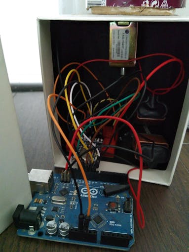 The main idea was to use sensors and voice as inputs and release some food that's kept in a container to Toto's food bowl.