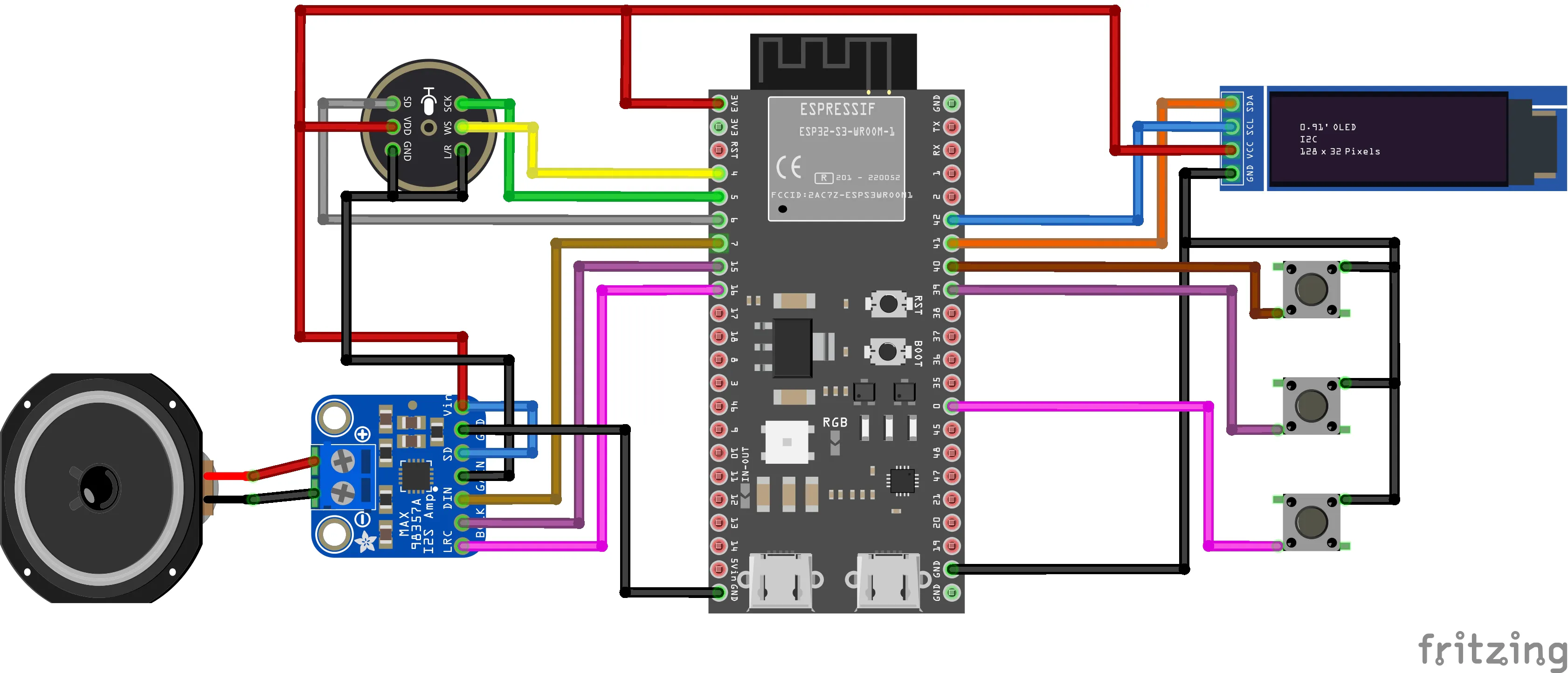 I liked this design because it already had everything well organized — proper placement for the ESP32, microphone, amplifier, buttons, and display. It also made the whole setup small enough to actually carry around.