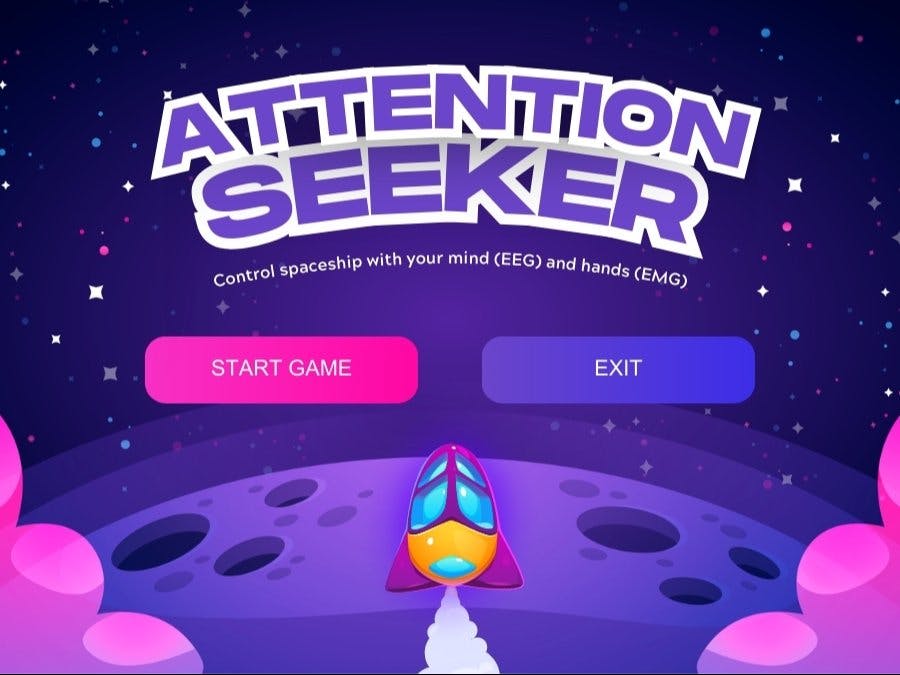 - Electromyography (EMG): Electromyography is a technique that measures muscle response or electrical activity in response to a nerve’s stimulation of the muscle. In Attention Seeker, we are using this electrical activity or EMG signals to move the spaceship left or right.