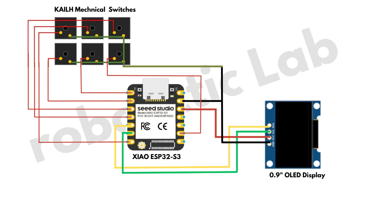 - Now for the switch wiring β and this is where this build is simpler than most macropad projects you'll find online. Normally macropads use a matrix wiring method, where rows and columns of switches share wires to save microcontroller pins. For example, a 3Γ2 matrix uses only 5 pins instead of 6. It's efficient but requires diode soldering on every switch and more complex firmware logic to scan properly. In this build we skip all of that entirely. Since the XIAO ESP32-S3 has enough GPIO pins available, we wire each switch directly and independently to its own dedicated pin β one wire per switch to a GPIO, and all switches share a single common ground wire. This is called direct pin wiring and it's simpler to solder, simpler to debug, and simpler to code.