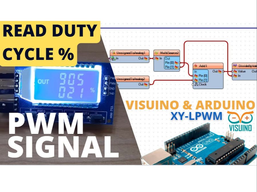On the schematic you can see that we split the digital pulses using "MultiSource1", First signal we take it directly to "PulseMeter1" to get the pulse period when it is HIGH, Second signal we invert it using "Inverter1" and we take it to "PulseMeter2" to get a pulse period when its LOW, we convert both periods to analog values and we sum them to get the total length using "Add1", then we use "DivideByValue1" to divide HIGH pulse period / Sum of both periods, and we multiply all at the end by 100 using "MultiplyByValue1"