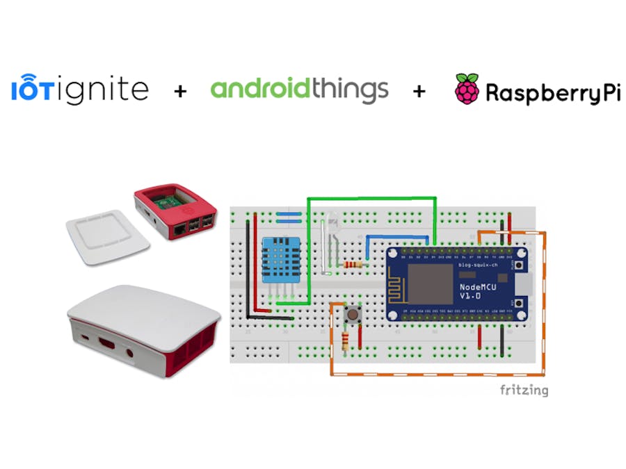 Basically, the project will transfer data with DHT11 over wireless through NodeMCU. This transfer will be done by using an AndroidThings as a gateway and light a led by a rule we set.