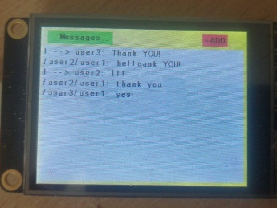 In the Nextion program, you need to create several pages : a chat window for displaying recent messages, and several pages for creating a message (keyboard Windows with lowercase alphabet, uppercase letters, and special characters).