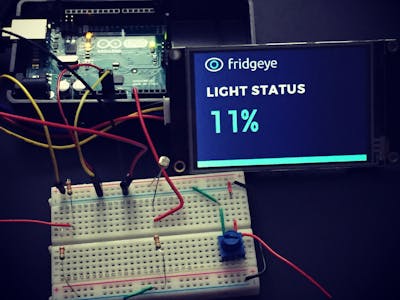 Build The Fridgeye DeviceThe bulk of this post will be focused on getting the Fridgeye app running with the Nextion touch display connected to an Arduino but before we get that far we need an actual device that can sense light. No problem. Let's take 5 minutes and build one. I promise it won't take a second longer. All you need is an Arduino, breadboard, photoresistor, and a 3.3K resistor. We'll wire it up like this. Don't worry about the screen connections just yet. Just focus on the Arduino, resistor, and photoresistor.