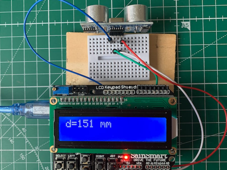 We wire the trigger pin to analog pin A1 and the echo pin to analog pin D3.