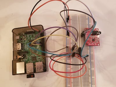 Graphing live data from analog sensors with live charts requires an ADC in this example I use an MCP3008. This example is the same as "Live Temperature Data" except with an analog sensor. You can use a wide variety of sensors (I just happened to have an AD8232) but something like a TMP36 is probably more appropriate due to the relatively low sampling rate of the ADC.