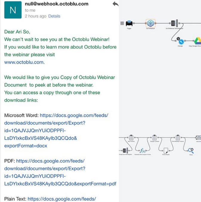 - Octoblu has a rate limit of 1 email per minute, so expect a bit of a delay between each email.