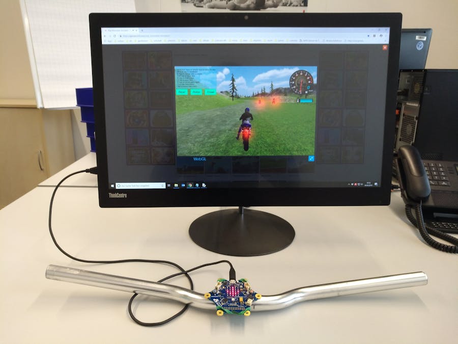 Jetzt nur noch ein geeignetes Spiel starten, z. B. https://games.mi9.com/play_motorbike-simulator. Die Enduro lässt sich am besten steuern, etwas Übung braucht es trotzdem. Bei Bedarf können die Schwellwerte, ab denen eine Neigung des Calliope tatsächlich zu einer Richtungsänderung führt, im Programmtext geändert werden. Dann ist der Fahrspaß aber garantiert :-)