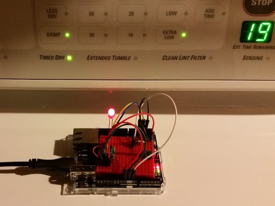 So, I paired a Arduino Yun with an accelerometer and coded the Arduino to post status to a ThingSpeak channel. I added an Alexa Skill and Lambda function to enable "Alexa: Are my clothes dry?" inquiries that check the ThingSpeak channel dryer status and provide a voice response via Echo.