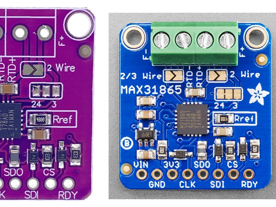 The adafruit has a picture show where to solder and plug to board, I dont know why, but it is diffrent as instruction from max31865 manual on page 23