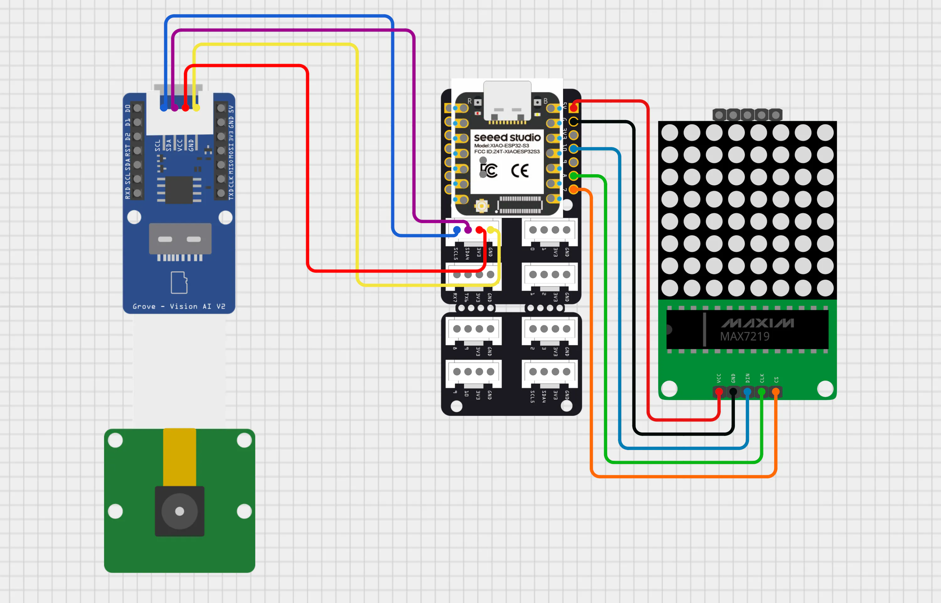 - OV5647 Camera ModuleUsing the same Grove Vision AI Module V2 from Option 1. Connect XIAO ESP32 S3 + OV5647 Camera Module to the Grove Vision AI Module V2.